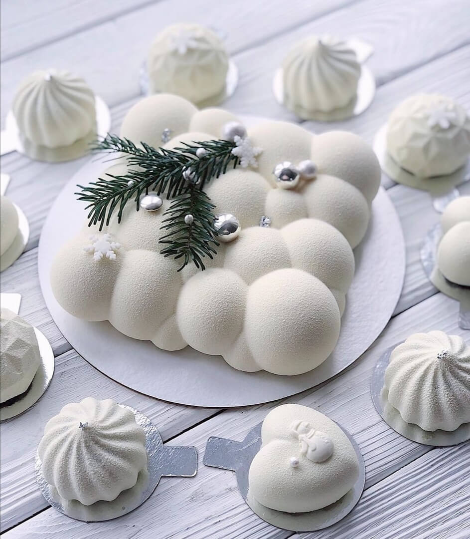 По-настоящему зимний торт, напоминающий уютные пушистые сугробы после снегопада